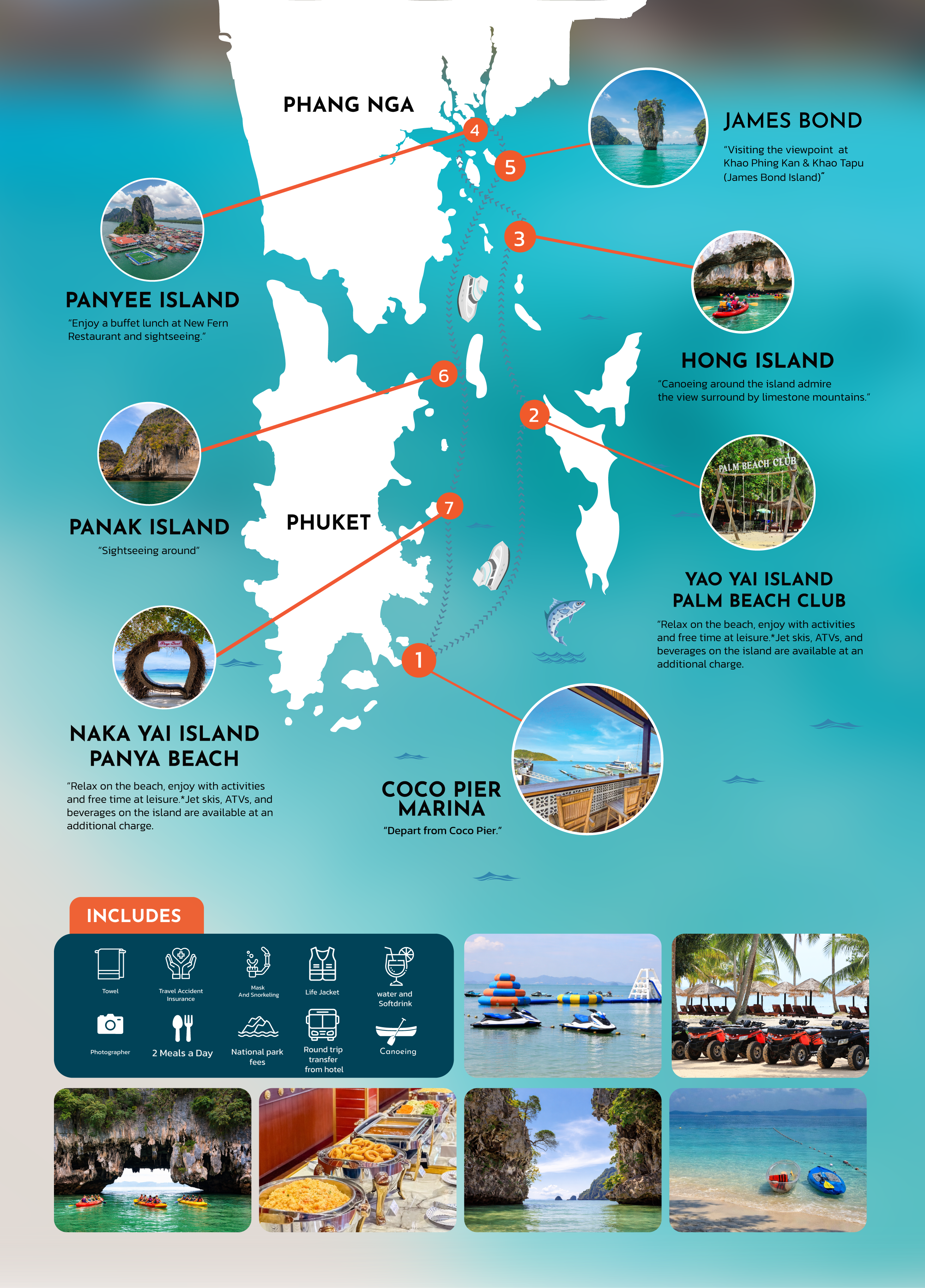 -07:30 - 09.00 • Заберите из отеля и зарегистрируйтесь на пирсе Коко, насладитесь легким завтраком и знакомством с поездкой.