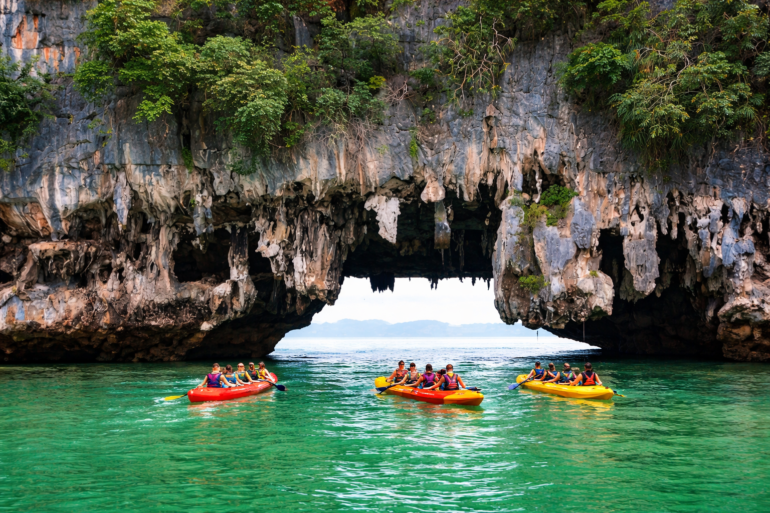 -Каноэ по острову, любуйтесь видом, окруженным известняковыми горами.