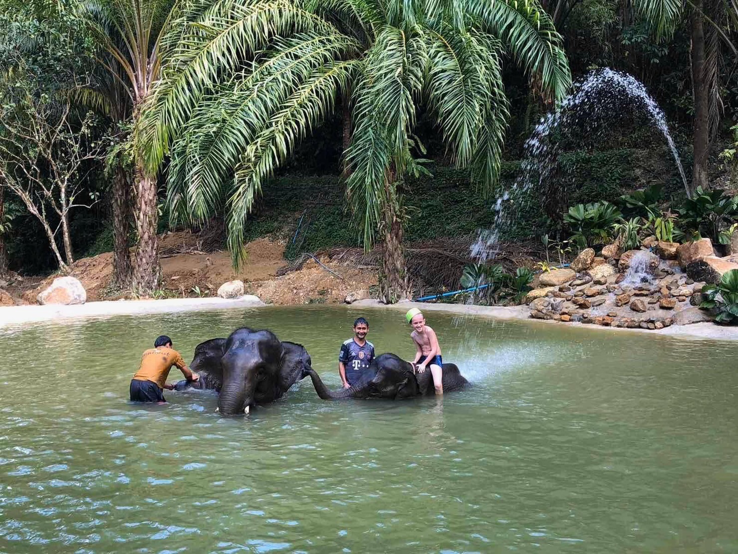 15.00 : Прогулка на слонах по реке 30 минут, шоу маленького слоненка, душ от маленького слоненка, возможность пофотографироваться (Перекус из фруктов, кофе, чая и прохладной воды).