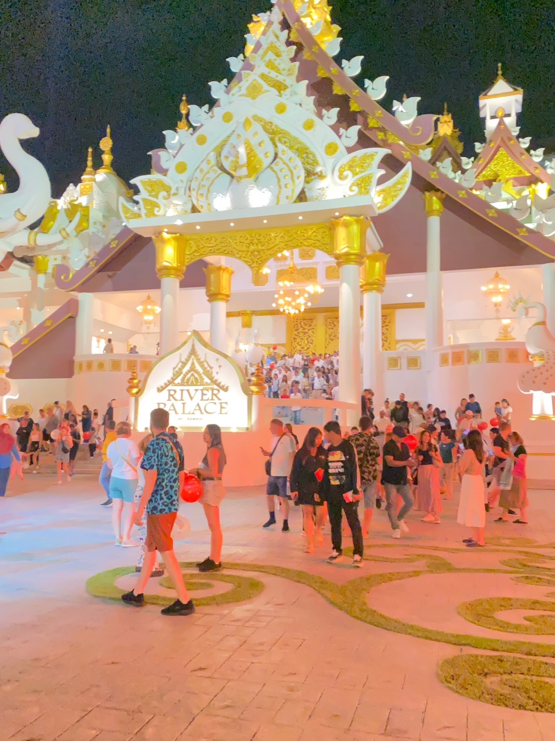 • Величественный Речной дворец вмещает кондиционируемый парадный стадион на 2,200 посадочных мест, где проходит известный парад королевских лодок, который посещали легендарные короли и королевы прошлого, и в котором принимают участие все жители Королевства Камалы. Стадион также оснащен аудиосистемой объемного звучания, одним из самых больших LED-экранов, которые когда-либо устанавливались для театральных представлений, а также самыми передовыми на сегодняшний день технологиями освещения и специальных эффектов. Парадиум «Речной дворец» также используется для проведения различных мероприятий, как коммерческих, так и частных. * Парадиум - парадный стадион