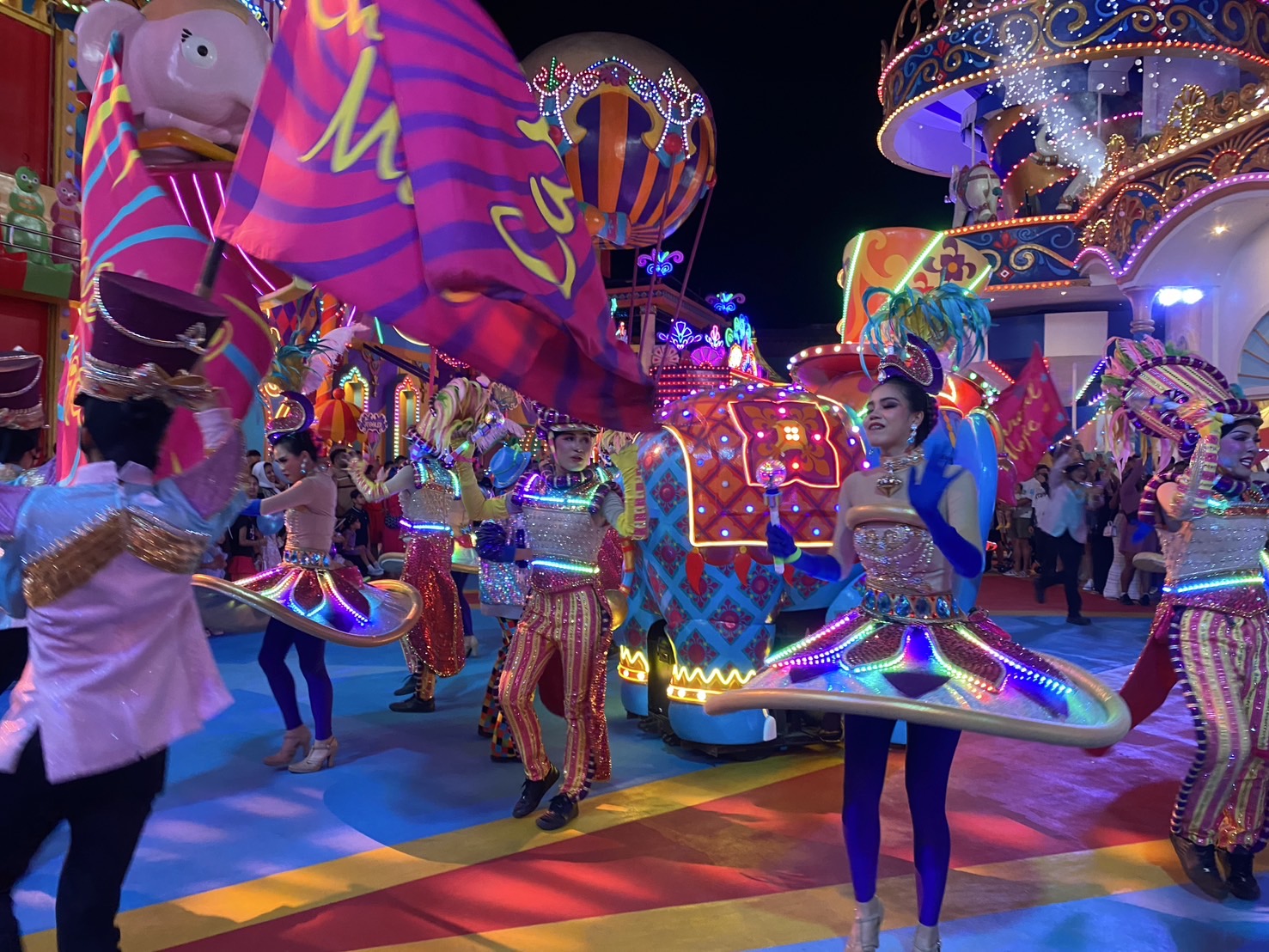 • это захватывающее приключение в страну, полную радости и чудес, где счастье можно найти за каждым углом, а приветливые улыбки сияют особым сиянием. Присоединяйтесь к нам, чтобы провести веселый вечер, наполненный красочными празднествами и волшебными праздниками, которые обязательно вызовут улыбки на ваших лицах, радость в ваших сердцах и Счастье в Свете. -Карнавальная магия... Волшебное королевство огней…