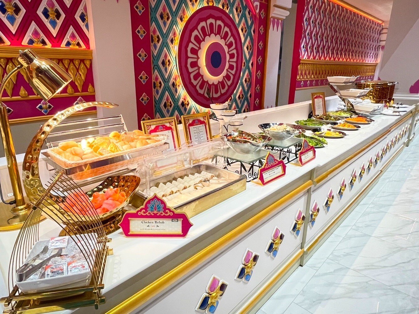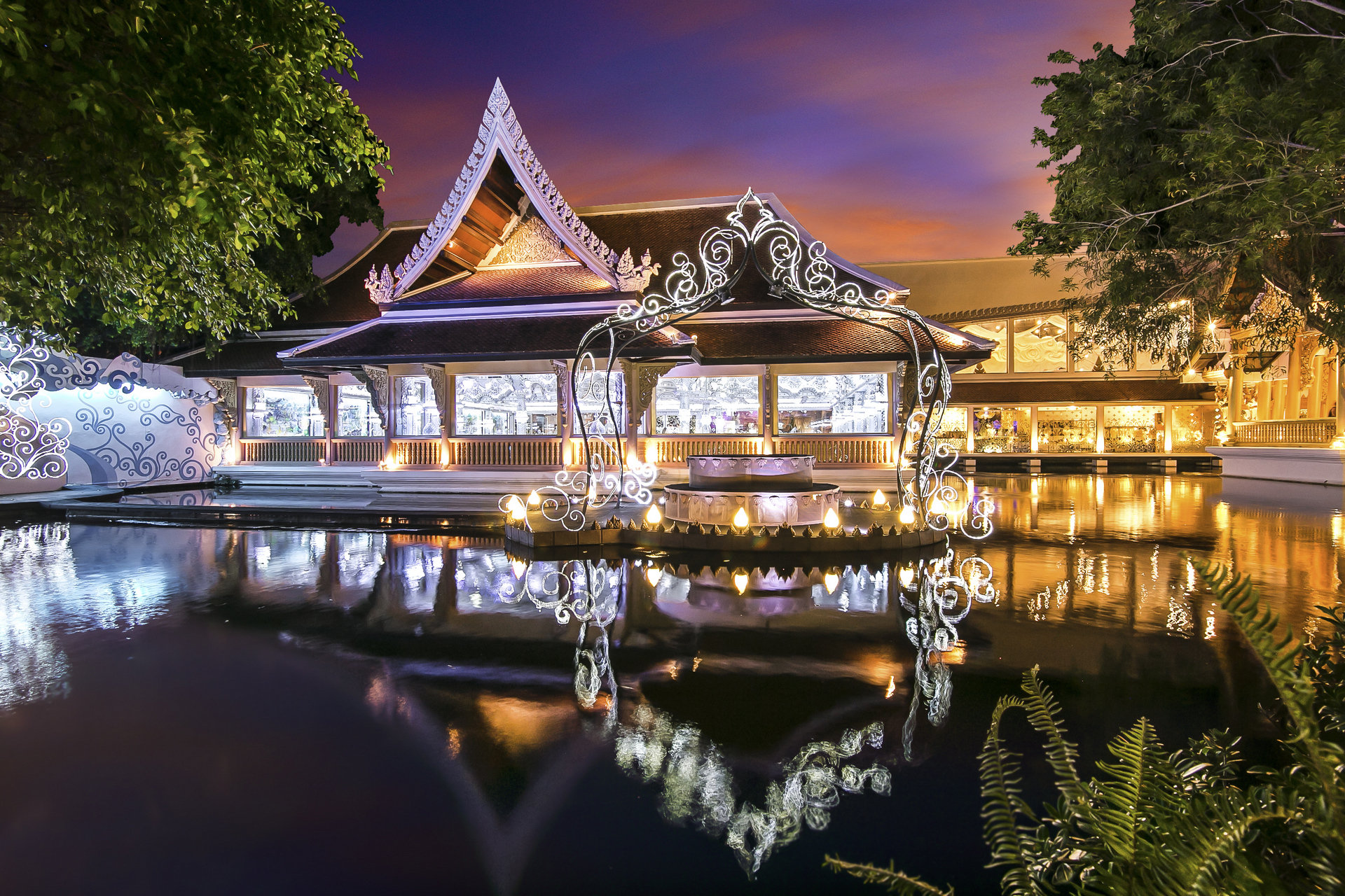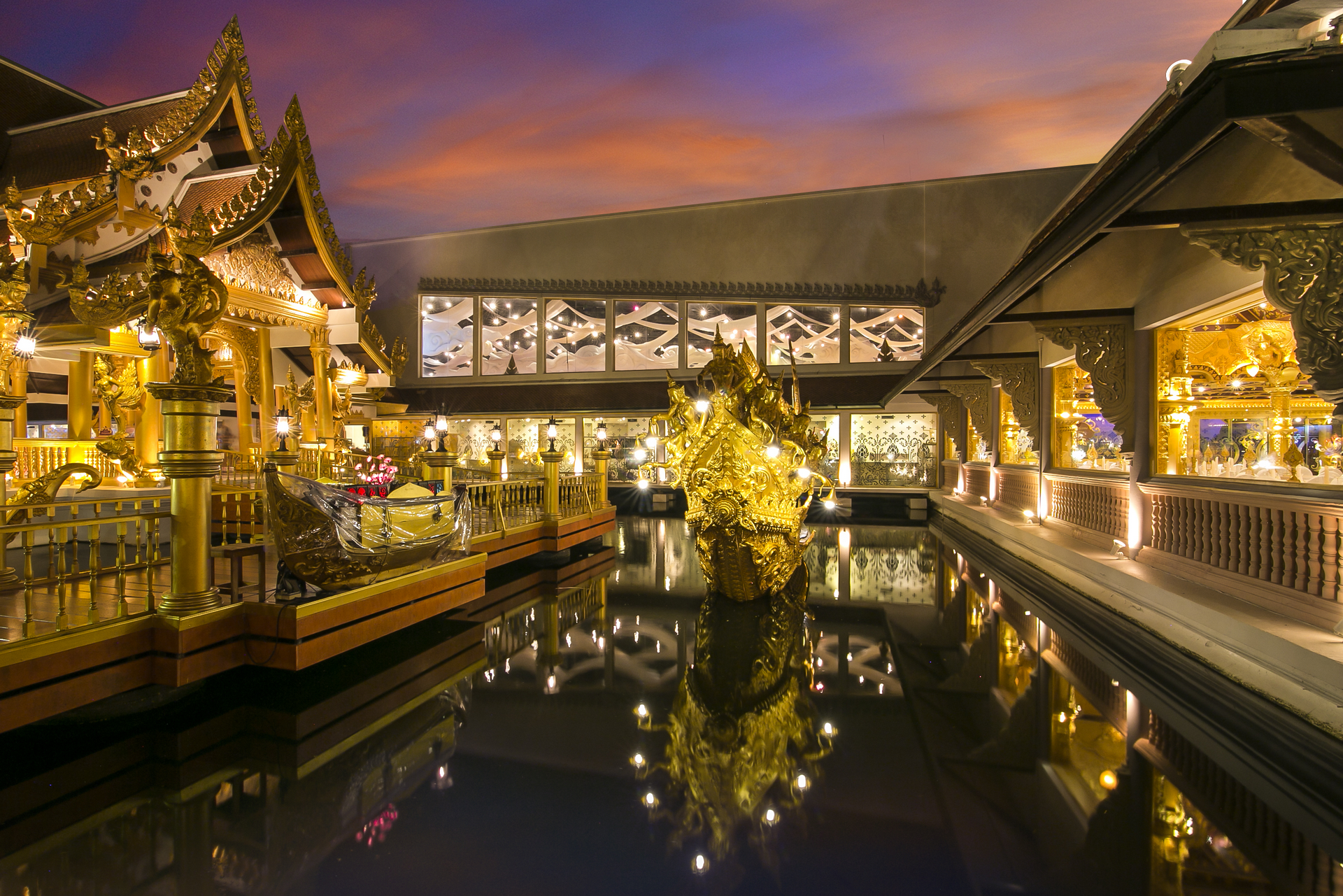 • Дорога от «Волшебной Горы» ведет к синему озеру, в котором плавает красивый Золотой Павильон, вход во великий ресторан мира с 4,000 местами и великолепными столовыми принадлежностями. Ресторан - шведский стол «Золотые Кинари», в котором есть мифические Киннари, полуптицы и полуженщины легендарной красоты и милосердия, заботятся об их гостях как о королях. Среди мистического Химмапханского леса, посетители могут баловаться роскошным банкетом Королевских Тайских блюд и деликатесов от популярных международных кухни, подготовленных самыми прекрасными поварами Таиланда.